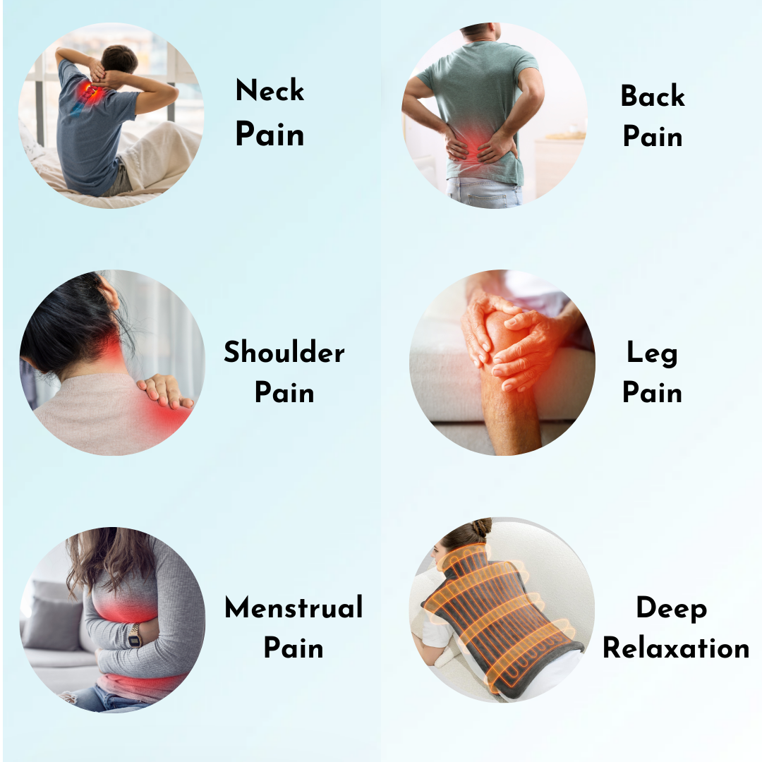 The weighted design provides a gentle pressure that mimics a comforting hug, helping to relieve tension in the neck, shoulders, and back, while also improving blood flow to the muscles using heat thearpy.